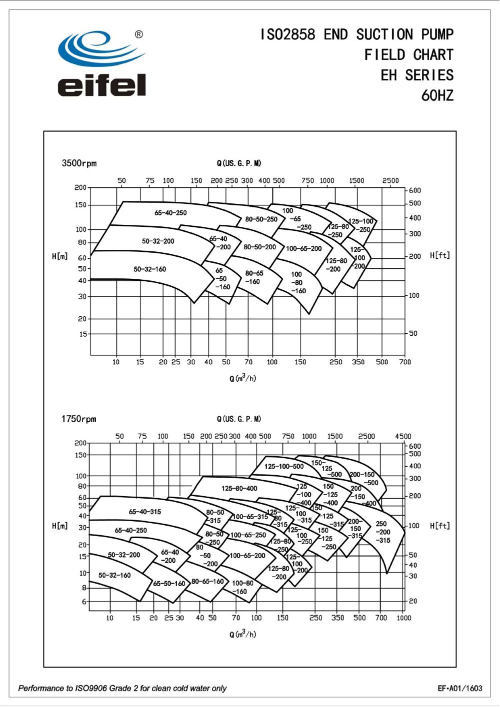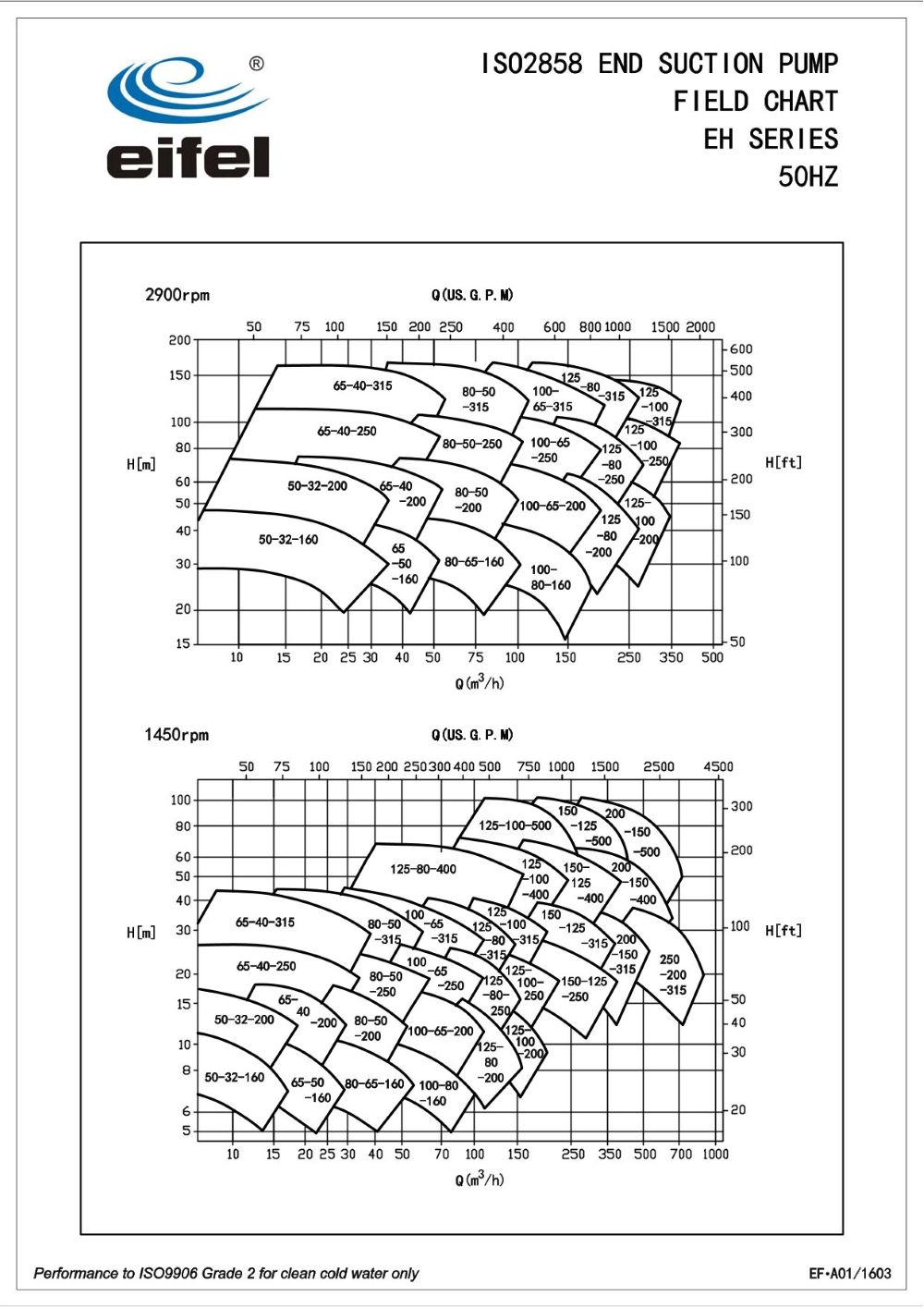 Данный насос разработан в соответствии со стандартом ISO 2858, при этом его характеристики превосходят требования ISO 2858. Насосы EH обладают превосходной гидравлической конструкцией, благодаря которой достигается значительно более высокая эффективность при меньшем энергопотреблении.