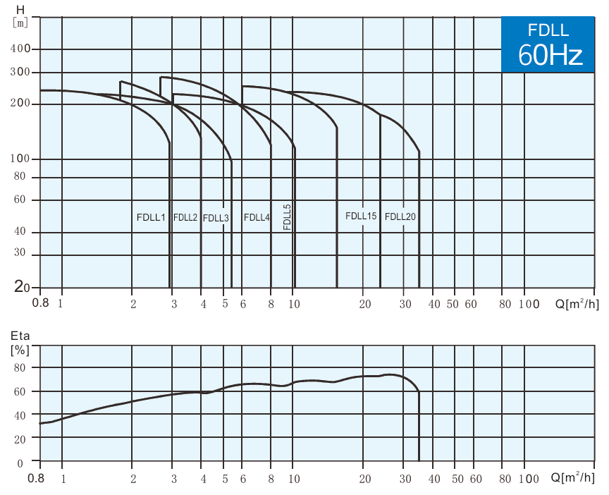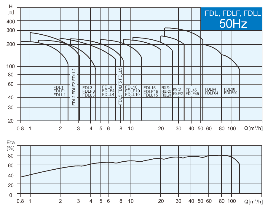 Центробежные многоступенчатые вертикальные насосы серий FDLF, FDL и FDLL несамовсасывающие, поставляются в стандартной комплектации с электродвигателями. Они имеют линейную конструкцию, при этом всасывающий и нагнетательный патрубки расположены в одной плоскости у основания насоса. Все модели оснащены необслуживаемыми механическими уплотнениями картриджного типа.